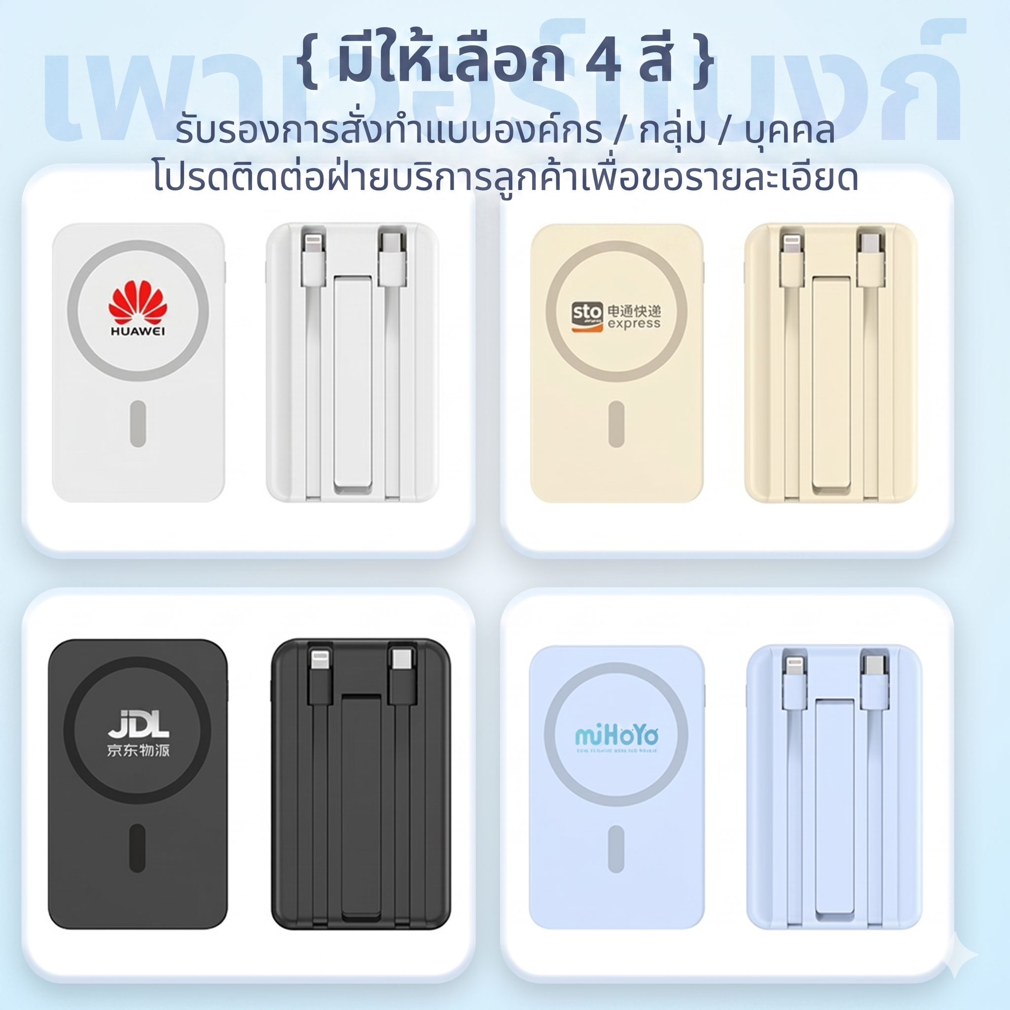 - สำหรับชาร์จอุปกรณ์: สาย Type-C , สาย Lightning , ชาร์จไร้สายแบบแม่เหล็ก