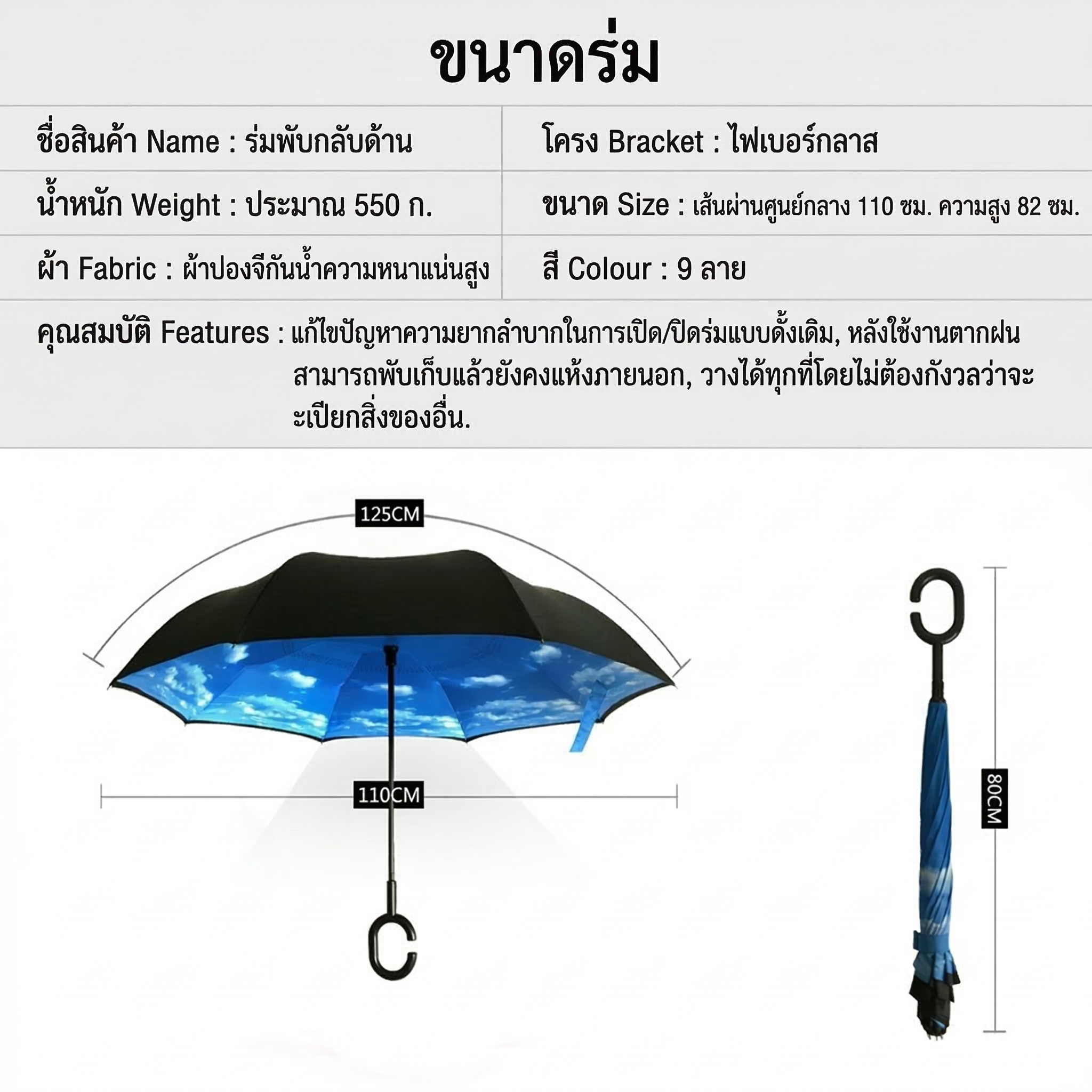 รายละเอียดคุณสมบัติของร่ม (Specifications)