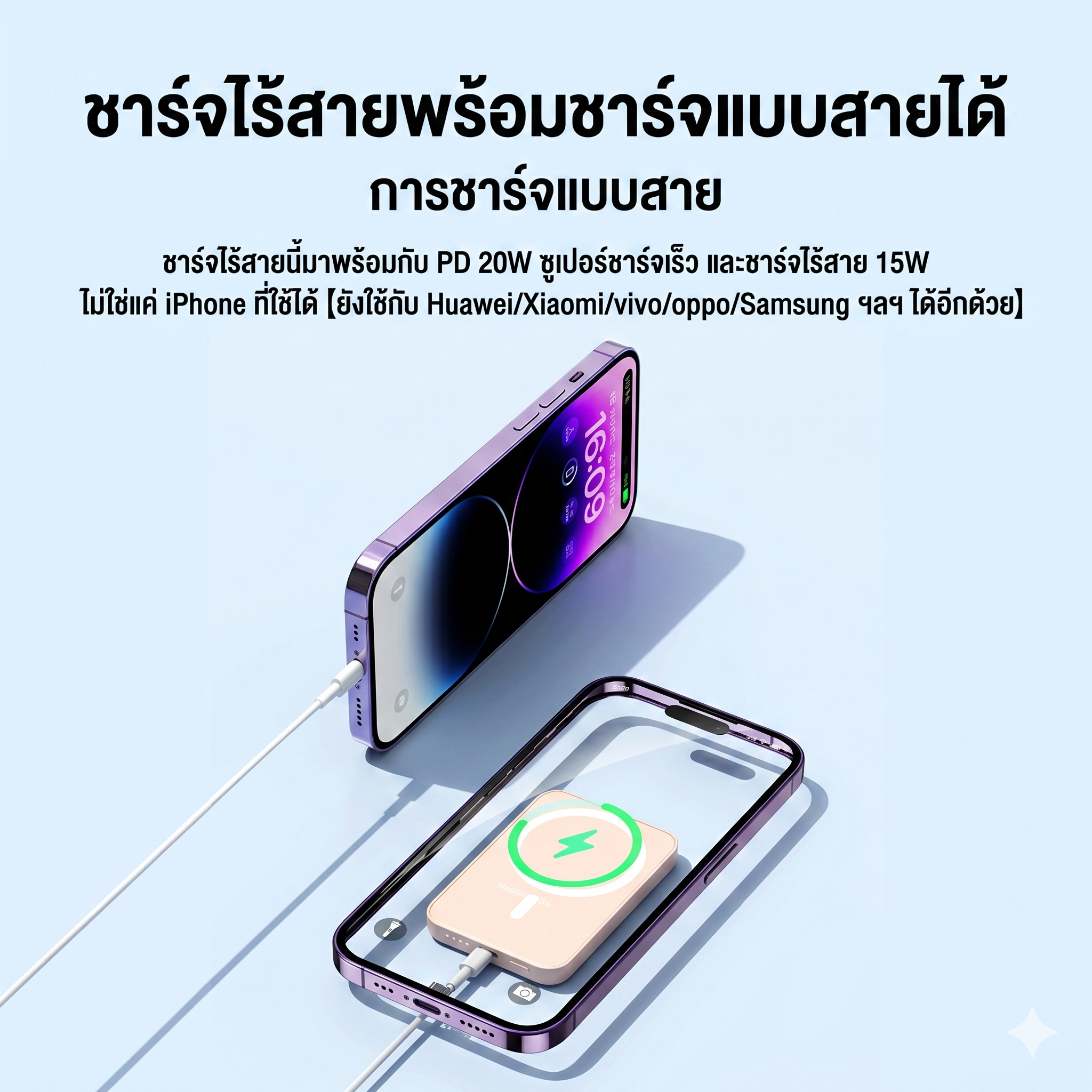 สำหรับชาร์จอุปกรณ์: ชาร์จไร้สายแบบแม่เหล็ก