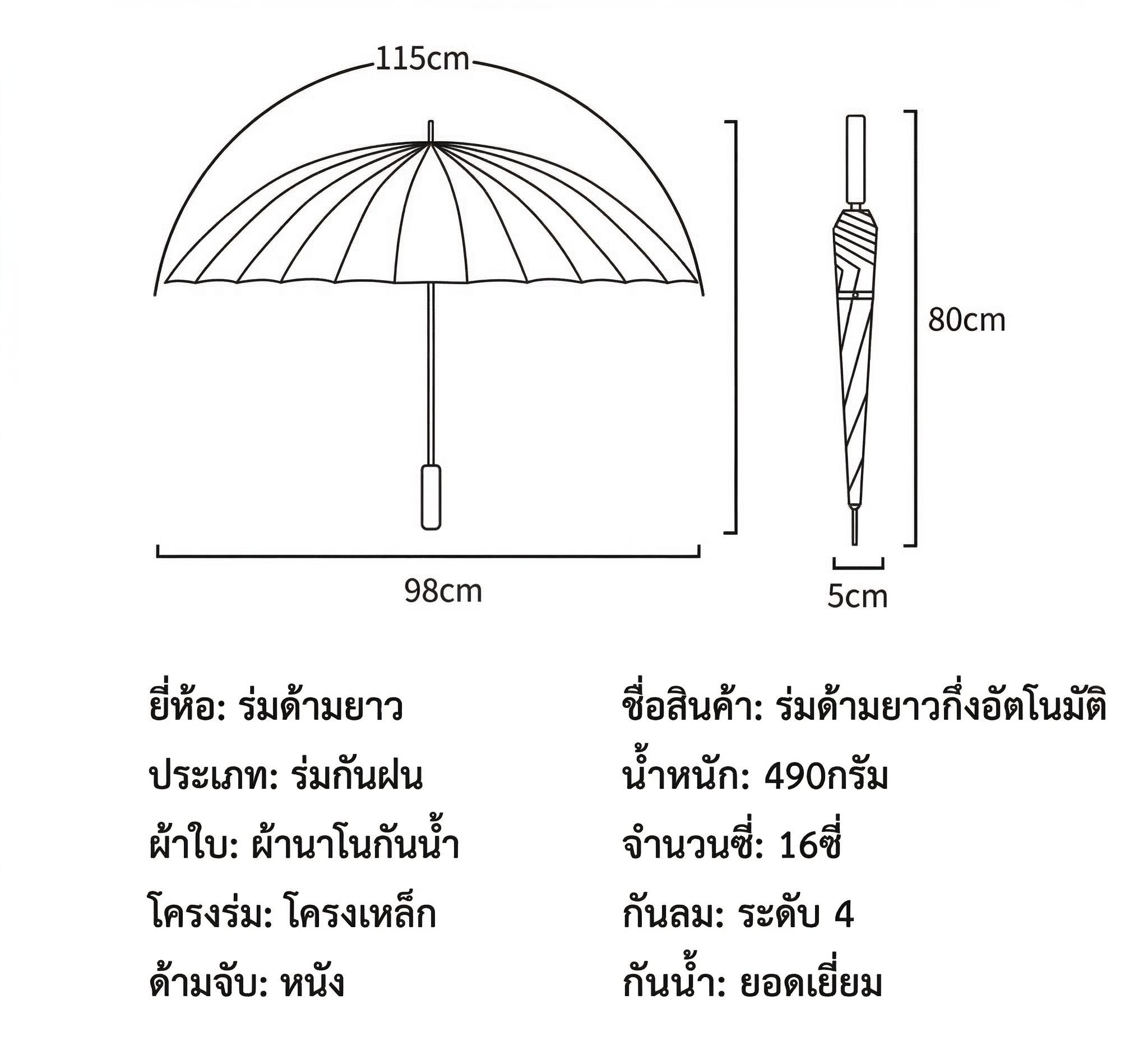 • ลักษณะการพับ: ร่มพับ 5 ตอน