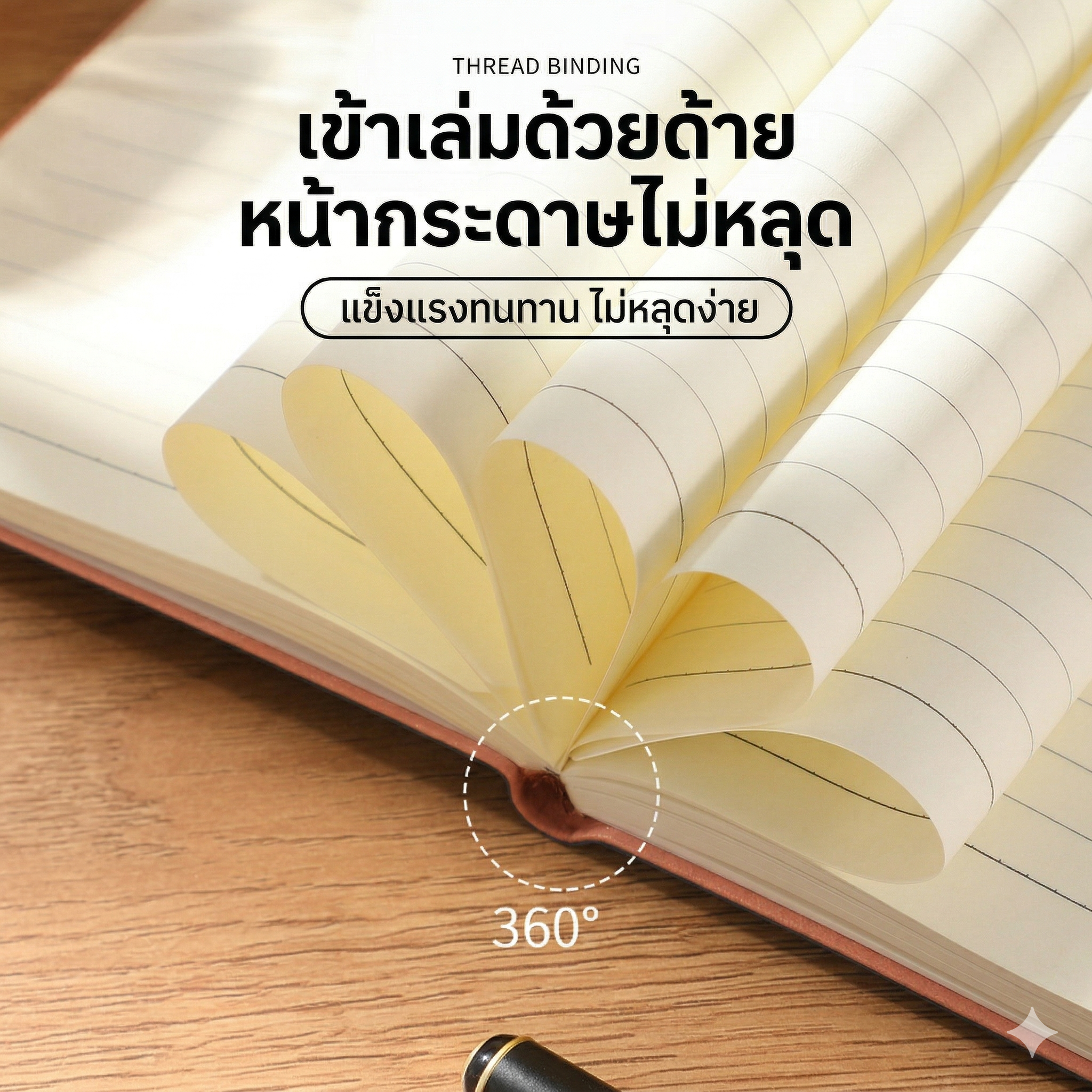 - การเข้าเล่ม: เข้าเล่มแบบเย็บด้าย (เย็บกี่ + ไสกาว)(Section Sewn Binding)