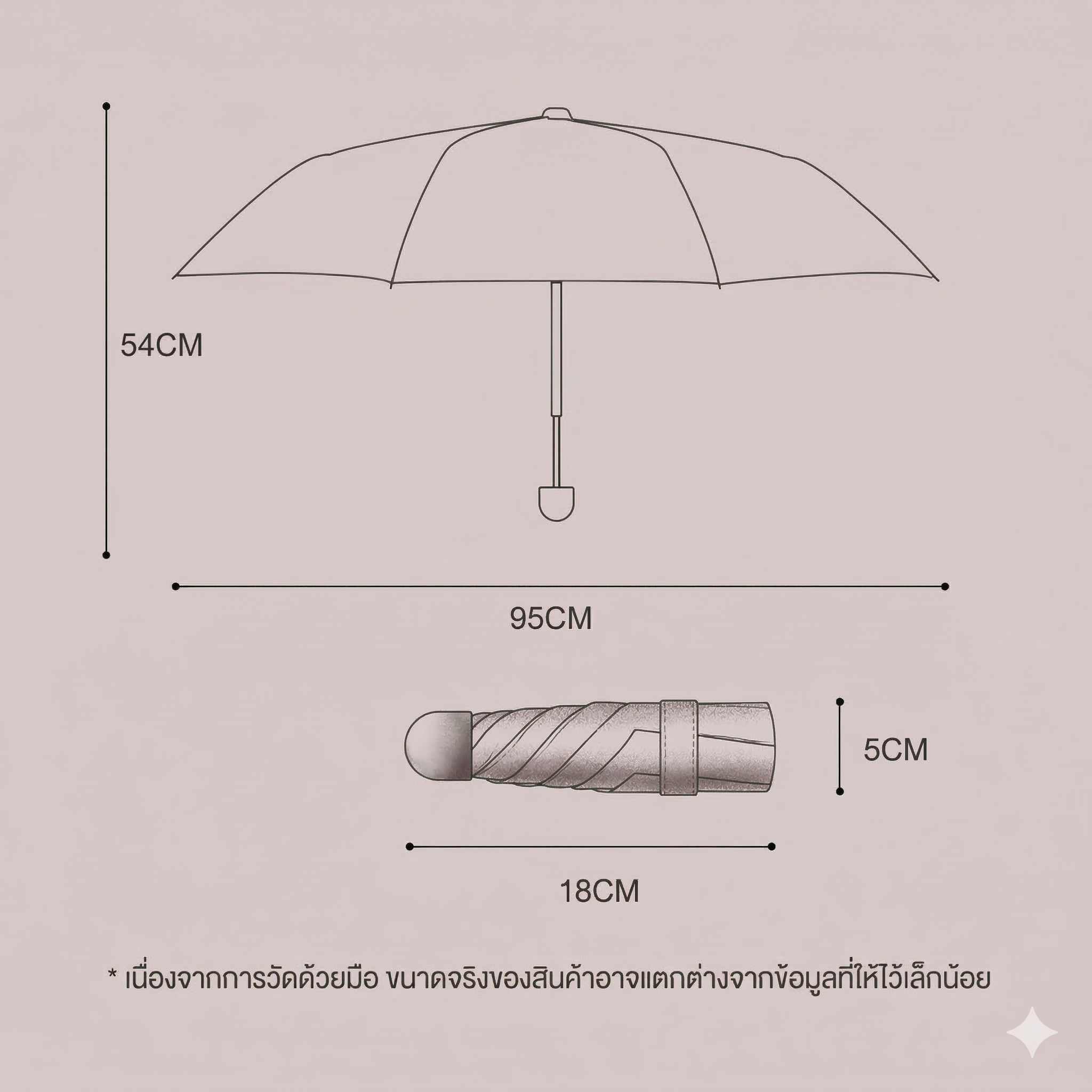 • ลักษณะการพับ: ร่มพับ 6 ตอน