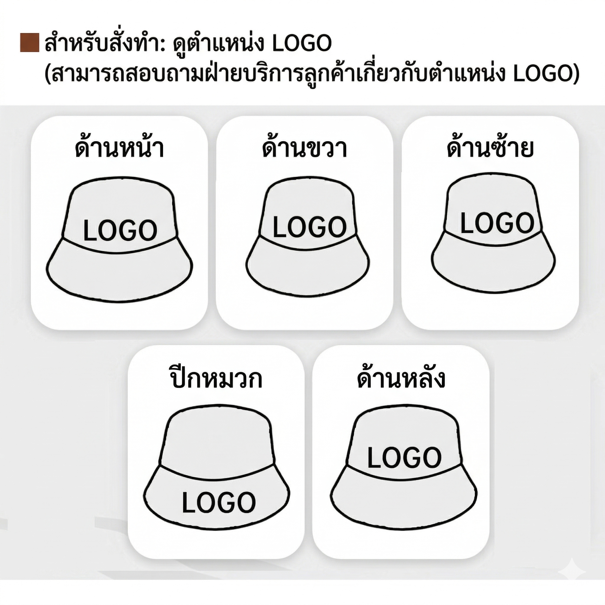 • ปักโลโก้หรือพิมพ์โลโก้บนหมวก