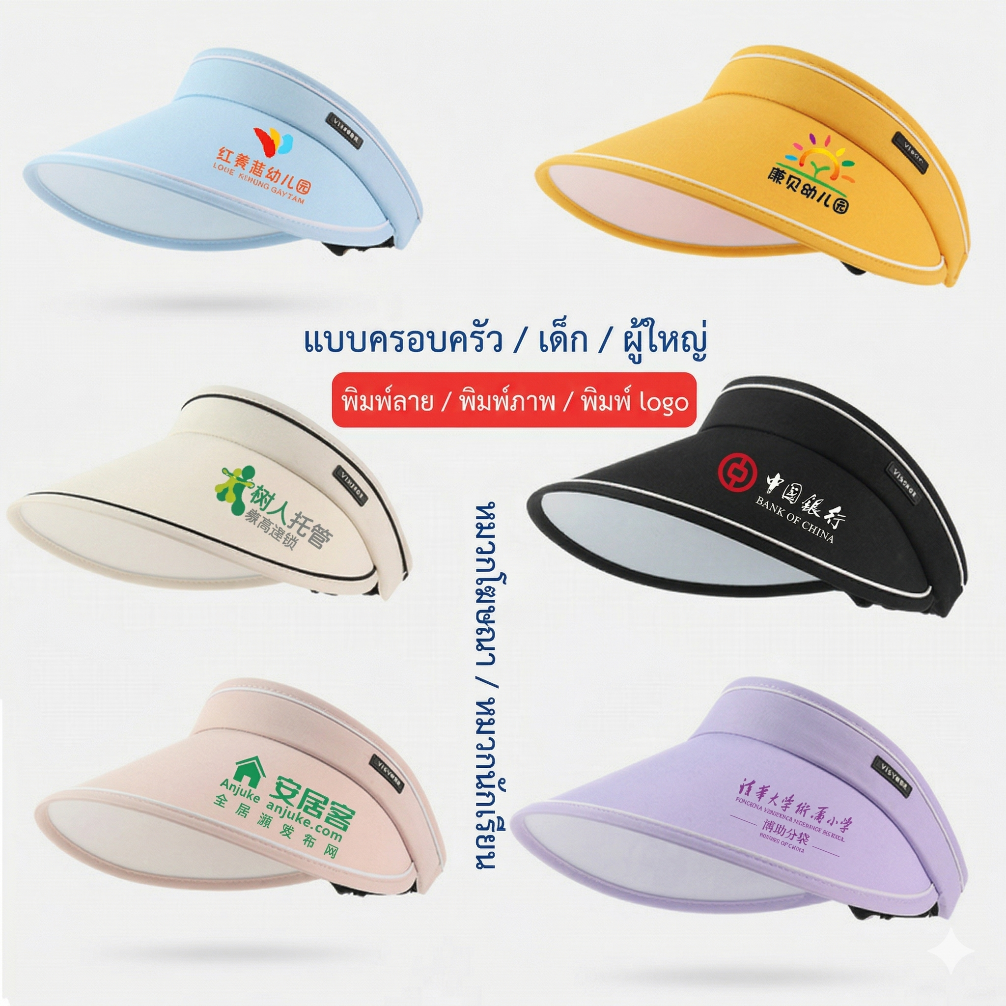 • ปักโลโก้หรือพิมพ์โลโก้บนหมวก