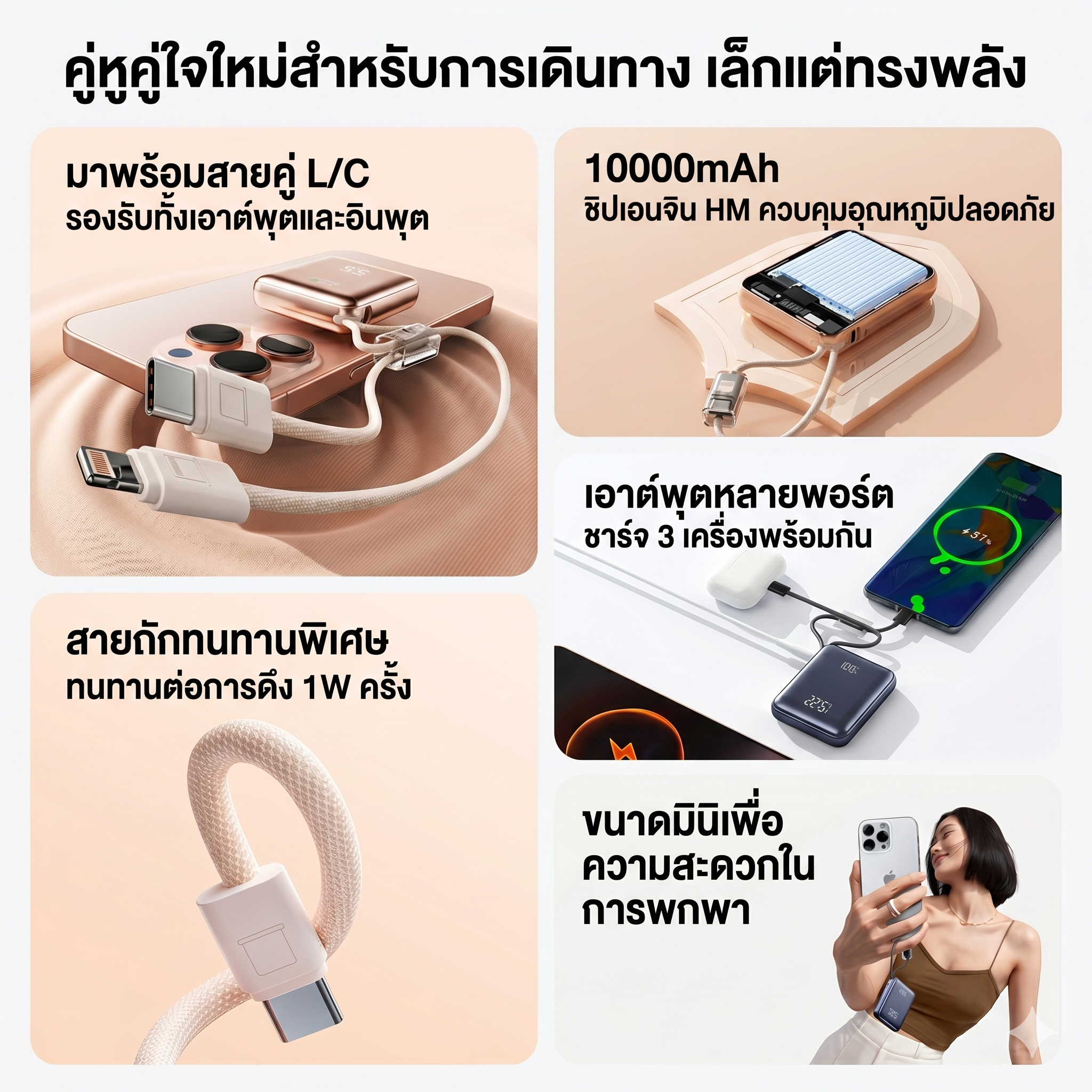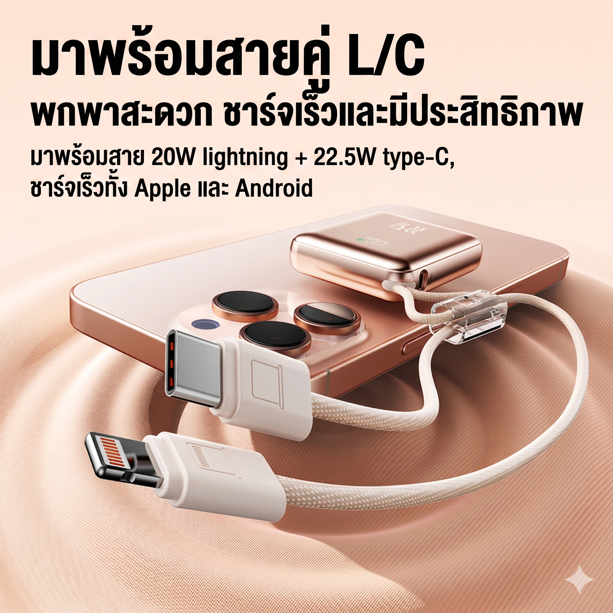 - สำหรับชาร์จอุปกรณ์: สาย Type-C , สาย Lightning