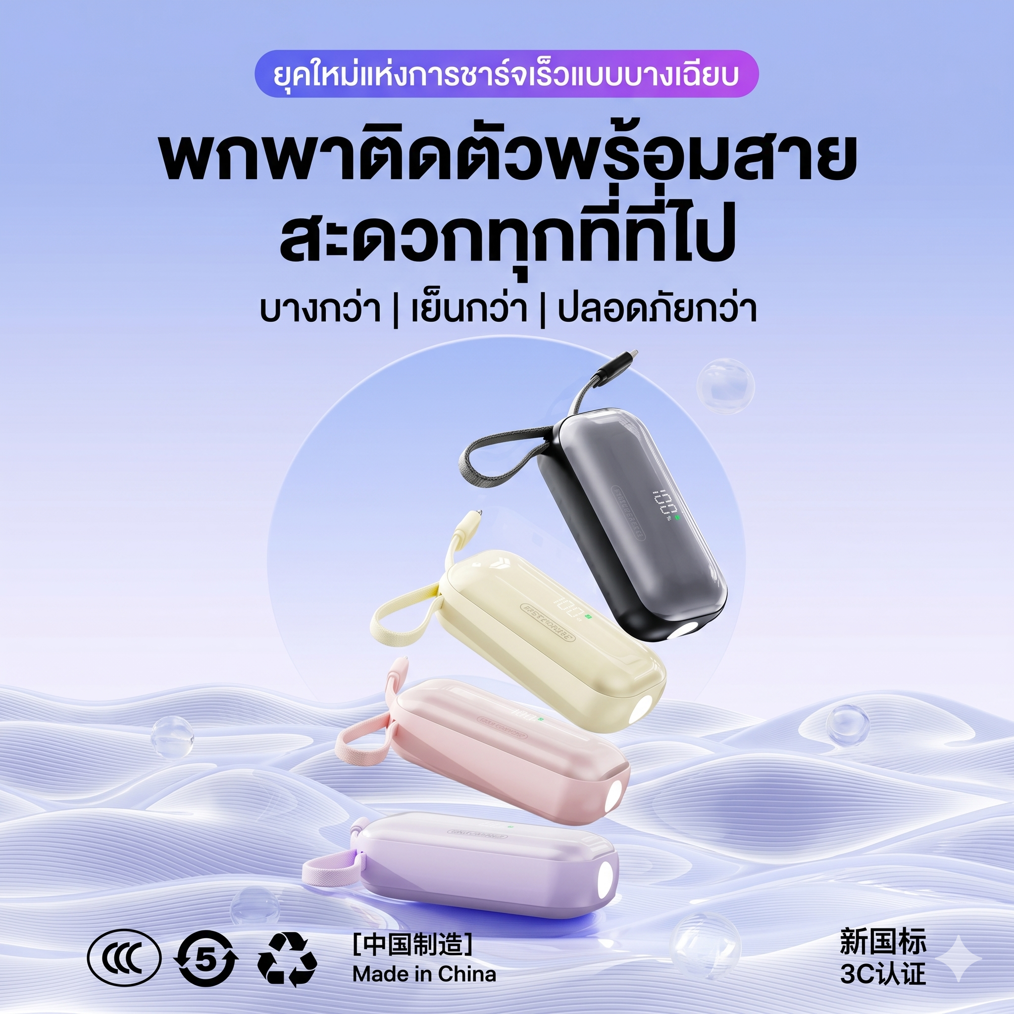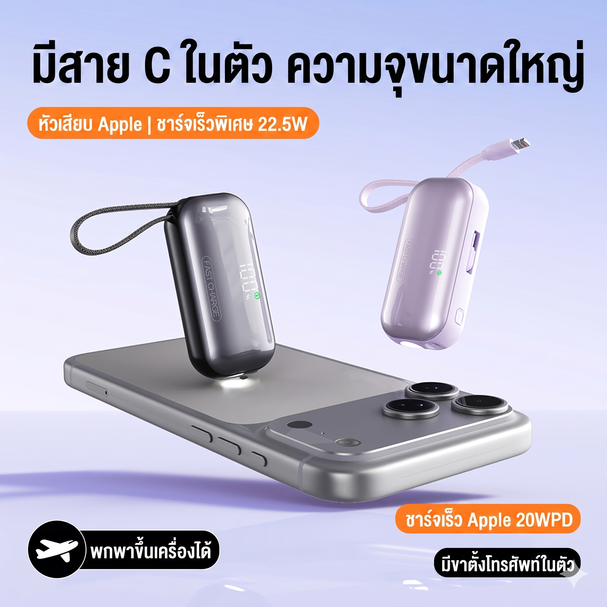 - สำหรับชาร์จอุปกรณ์: สาย Type-C , สาย Lightning