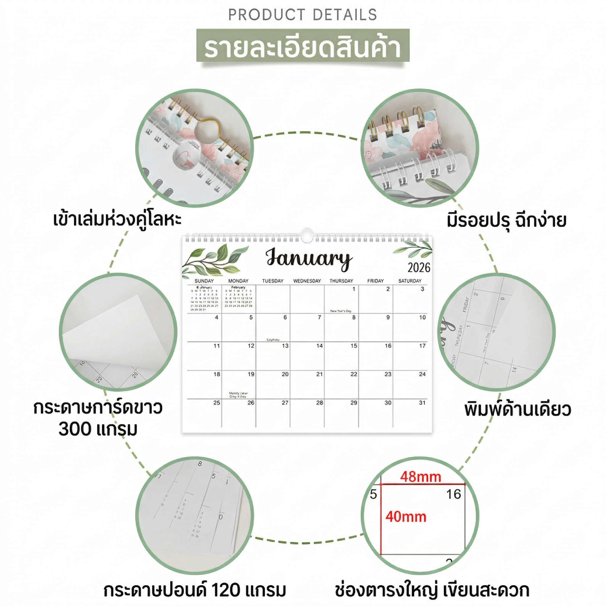 • พิมพ์โลโก้หรือข้อมูลบริษัทบนปฏิทิน